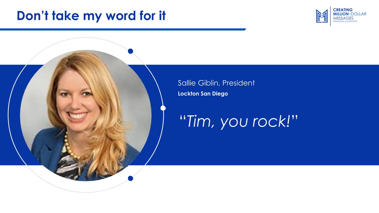 Your ability to respond to this question will make the difference between delivering a good message and a great one. Find that one thing that makes you unique, and you will blow your competition away.